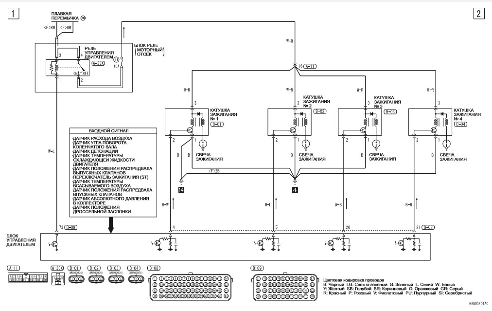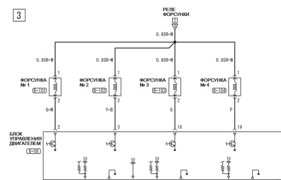 И там же схема подключения к форсункам с явным рисунком катушки и явным отсутствием защиты этой цепи от индукции этой катушки.