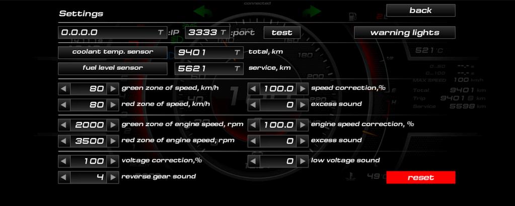 * Настройка IP адреса, номера порта, пробега и сервисных интервалов осуществляются с виртуальной клавиатуры.