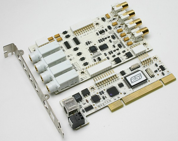 Основной чип DSP, заклеенный логотипом ESI — это VIA Envy24HT-S (24 бит, 192 кГц; интерфейсы: три I2S/AC-link выходных, два I2S/AC-link входных). Цифровой трансивер — AKM AK4114 (8 входов, 2 выхода).