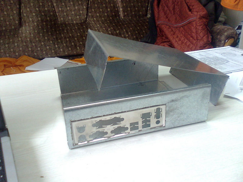 В четвертых, было желание побольше сделать своими руками, а иначе я бы и не затевал эту историю - решил корпус для компьютера сделать сам и подиум для моника тоже - естественно методом проб и ошибок, так как опыта в таких вещах нуль - за два дня сделал своими руками корпус из оцинковки 1 мм, правда чуть ошибся в расчетах и промазал на 5 мм, из за чего пришлось один край отгибать назад и он потерял свой вид, но ничего он будет не последним (у меня на базе стоит плазморезка и как назло сгорела - ремонт будет длиться не меньше месяца - импорт блин), поэтому получилось не слишком, т.к. торопился получить хоть какой то результат по быстрее;
