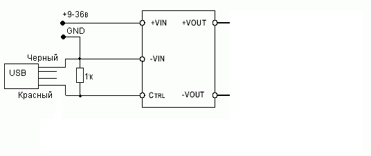 Или можно подавать питание на преобразователь через реле, а обмотку реле запитать с ввыхода DCUSB