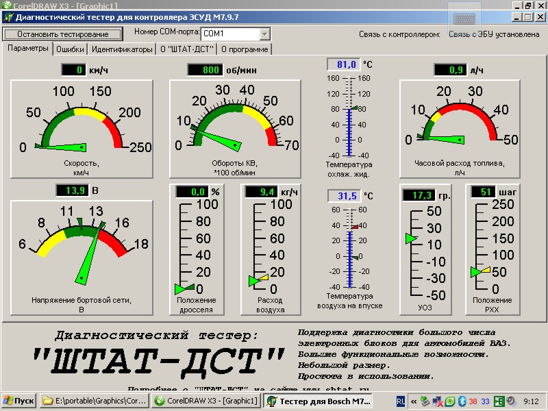 5) Подключен com-порту K-line адаптер.