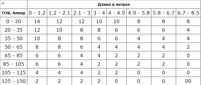 Таблица соответствия американского стандарта AWG международной метрической системе