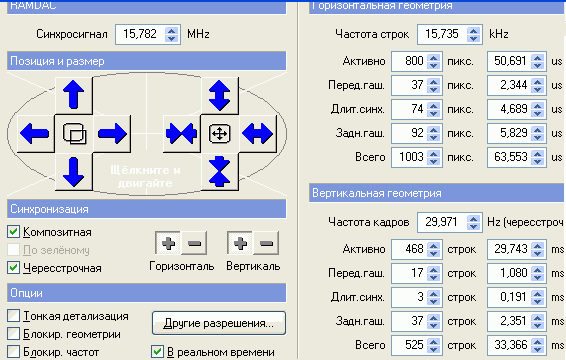 2. У меня стабилизация изображения наступает при совсем других цифрах ( например синхронизация по горизонтали 17 *** Гц) и только при минусах в окнах ГОРИЗОНТАЛЬ и ВЕРТИКАЛЬ.