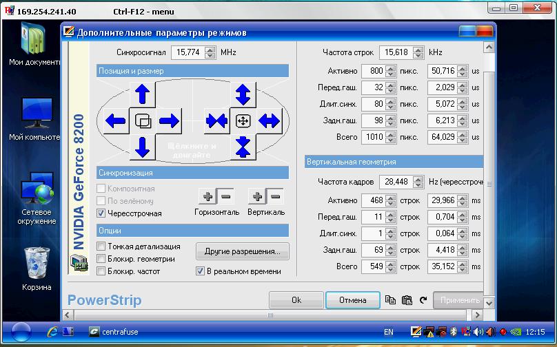 А для GeForce 8200 нету настроек случайно? Изображение у меня вверх убегает.
