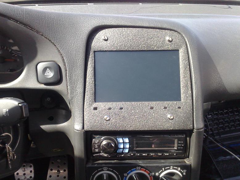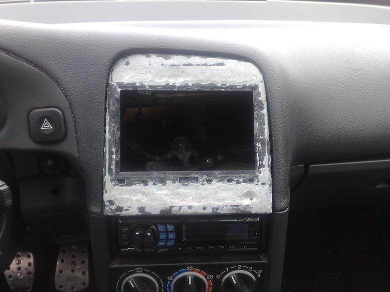 Изготовление мониторной(7" с питанием от БП) рамки с покраской и сушкой в центральный воздуховод заняло два дня( верхняя и нижняя части воздуховодов приклеенны к передней части монитора двухкомпонентной эпоксидкой, дальше стекловолоконная и чистовая шпатлевка BODY, потом эпоксидная высокотемпературная краска(для усиления,6 слоев), и наконец 2 слоя краски под "камень").