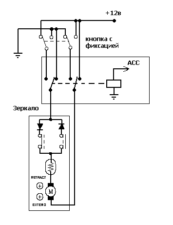Для зеркал с фиксируемой кнопкой самый простой способ использовать сигнал АСС без всяких контроллеров.