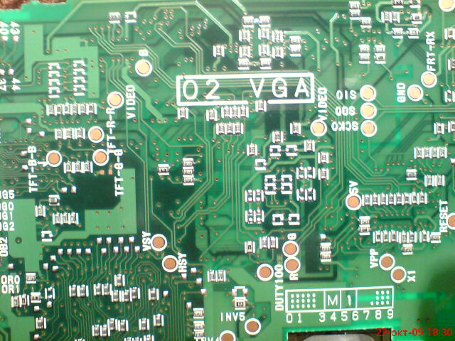 у тебя там рядом 3 резистора TFT-R,G,B вот тебе цвета, гдето рядом синхра, возможно VIDEO