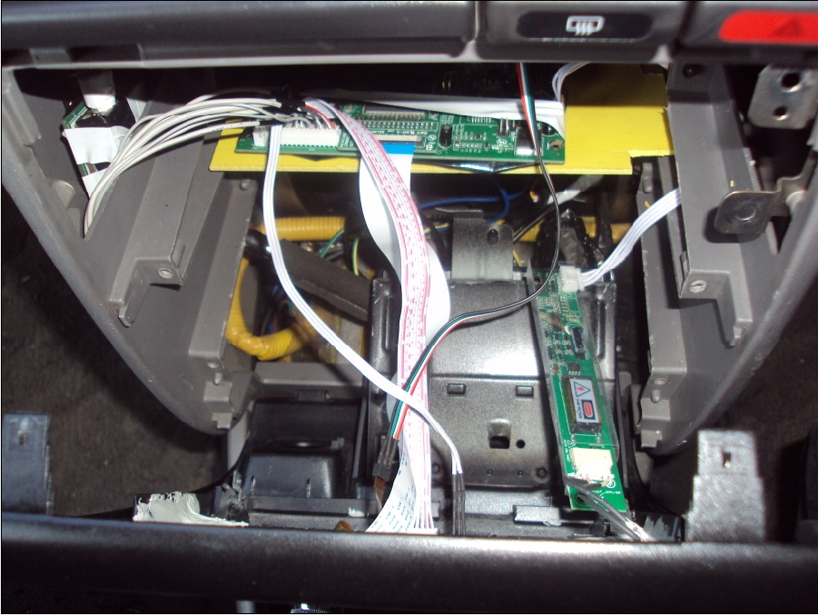 За панелью, в торпедном пространстве, установил полочку из желтого фомикса, для расположения контроллера дисплея, куда он идально встал, ничего ничему не мешает.