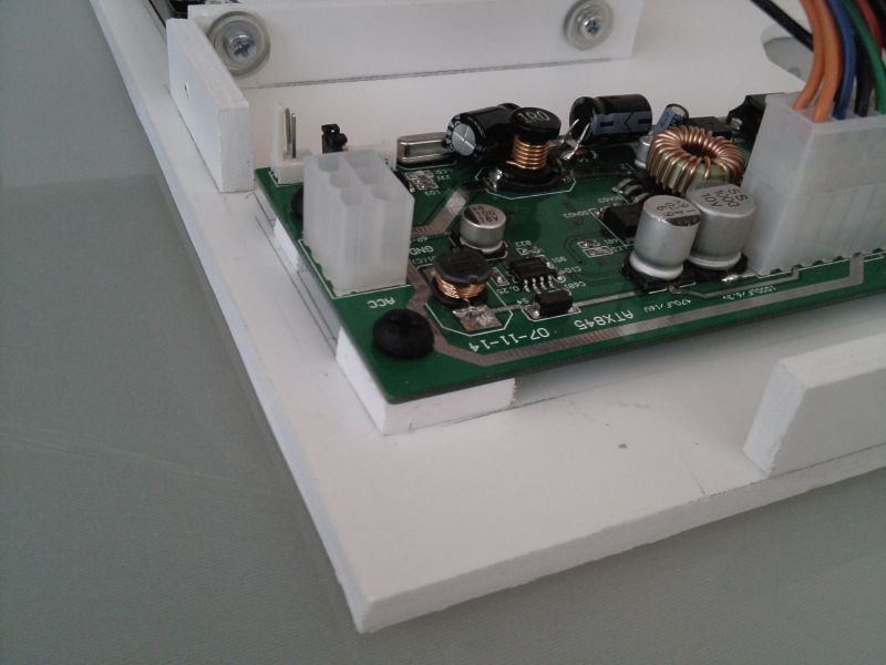 Используя материнку m-ATX, корпус получлся размером 26 х 21.5 х 6.5 . Толщина пластика 5мм.