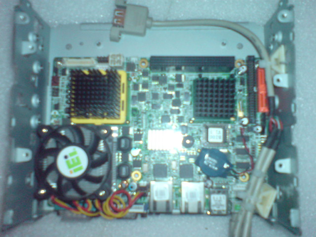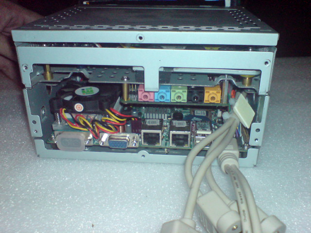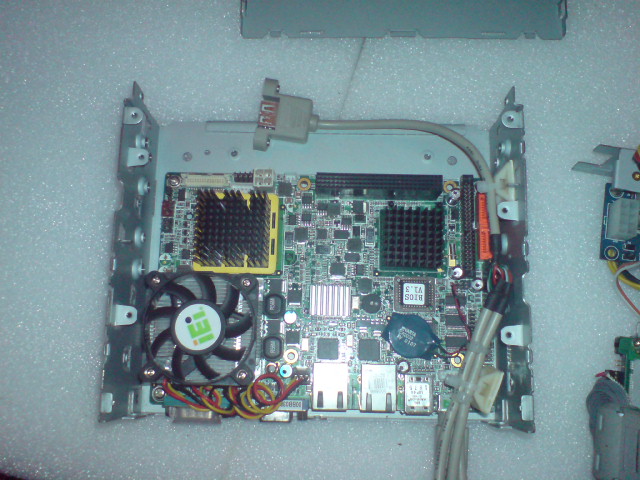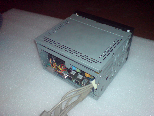 а вот и фотки почти собранного компа формата 2 ДИН в корпусе от инфила (покупателю будет нужен только монитор для рамки, которая установлена снаружи - всё остальное собрано и работает - винт, БП с мозгом и т.п.)