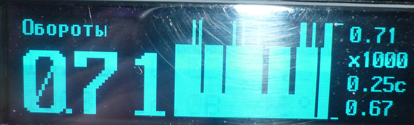 Обороты 715 (эта цифра скачет) – средние 702 – ср. отклонение +-14. Последние цифры тоже могут меняться, но гораздо в меньшей степени.