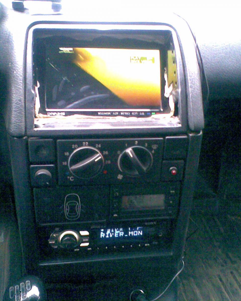 кстати я тоже пробовал вживлять моник,вентиляцией там никогда не пользовался,кстати норм так стоит и не бликует,но у меня заглублен.Сначала хотел тв и двд(снизу сони двд),теперь занялся PCar.