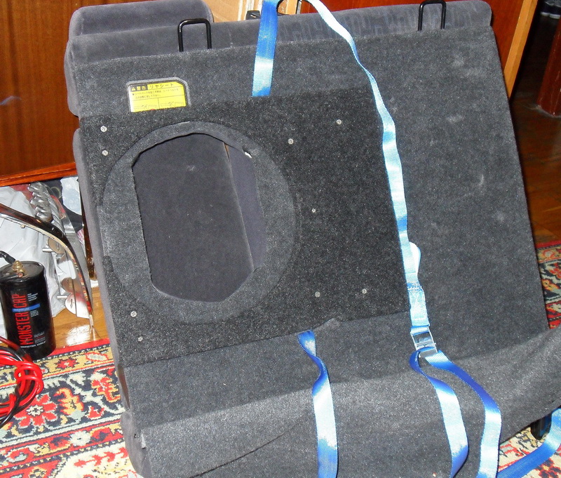 Установил на своё место, пока прикатывается, осталось подобрать кусочек карпета под цвет подлокотника и задрапировать дыру, чтобы саб не бросался в глаза: