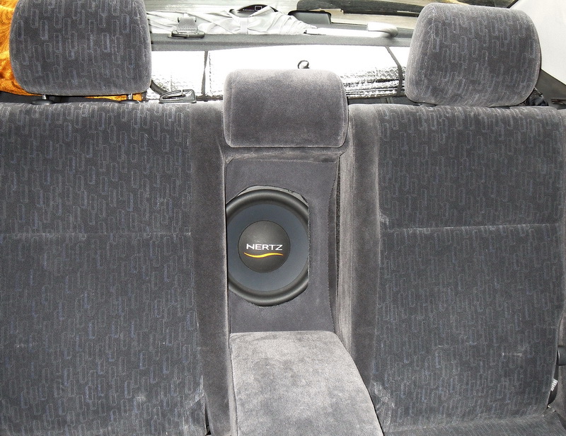 Дома залежался подаренный 10" саб Hertz ES250, вот решил его как-то приобщить к делу. Долго выбирал вариант установки, ввиду особенностей моего авто, и остановился на установке за задним сидением в районе подлокотника.