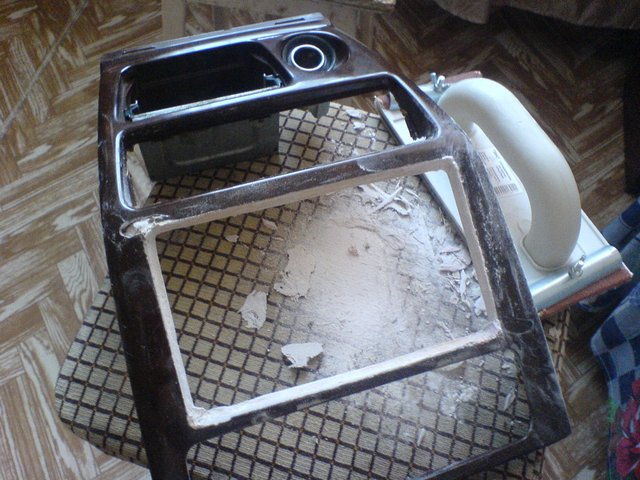 - после предстояло вырезать проём под пепельницу и самое сложное:под разъём прикуривателя