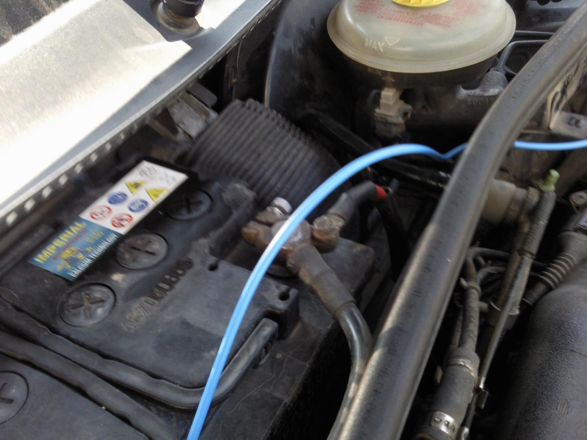 здесь делал фото о том как протянул кабель с плюсом с акумулятора.дальше подсоединил через реле.