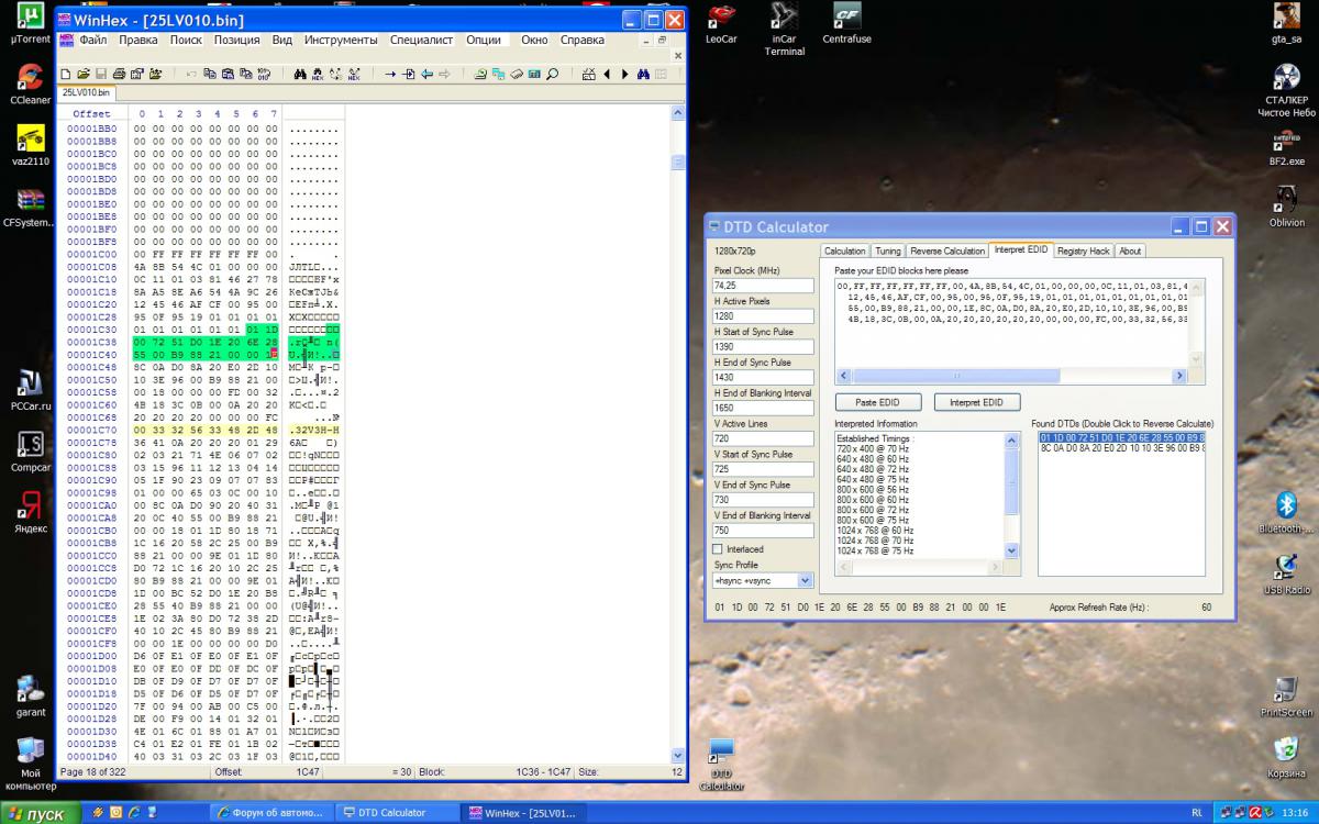 нажимаем кнопку interpret EDID,и видим наше нативное разрешение,его DTD,и расположение байт в прошивке.В моём случае 1280*720