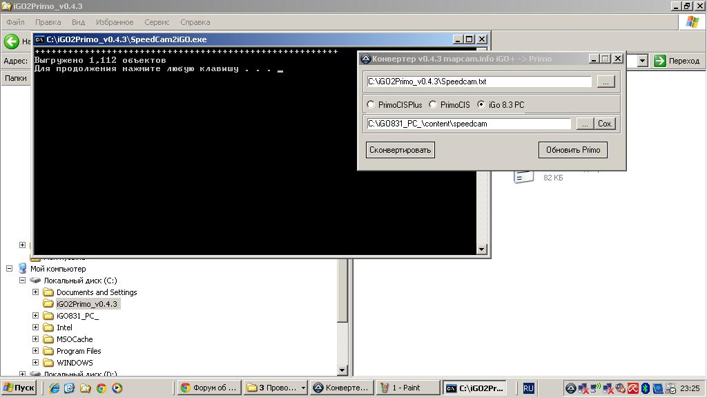 Йесс! все получилось! Правда - решительно не с первого раза. Получилось тогда, когда обе папки - и iGO831_PC_ и iGO2Primo_v0.4.3 оказались в корне диска C