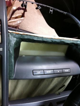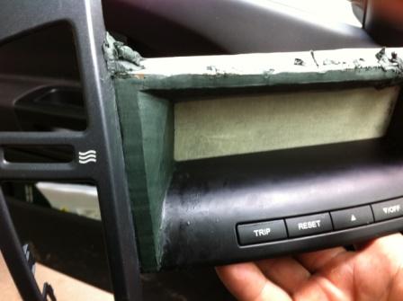 В общем, я понял, что поспешил отрезав полностью верхний козырек. Панель потеряла жесткость, и к тому же вместе с козырьком "отпилились" 2 крепления к "торпеде". Пришлось от останков козырька отпиливать кусок с креплениями и приклеивать его на место.