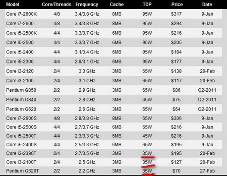 Новые процессоры с малым потреблением 35Вт:
