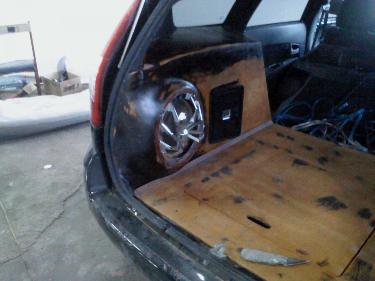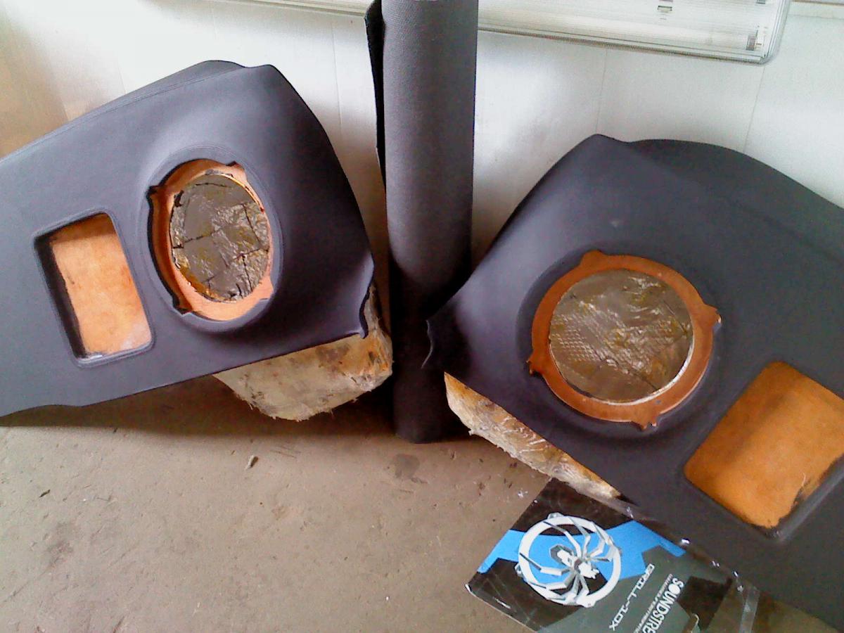 Корпуса сабвуферов находятся в нише задних крыльев,сделаны целиком из стеклоткани и врощены в фальшпанели.