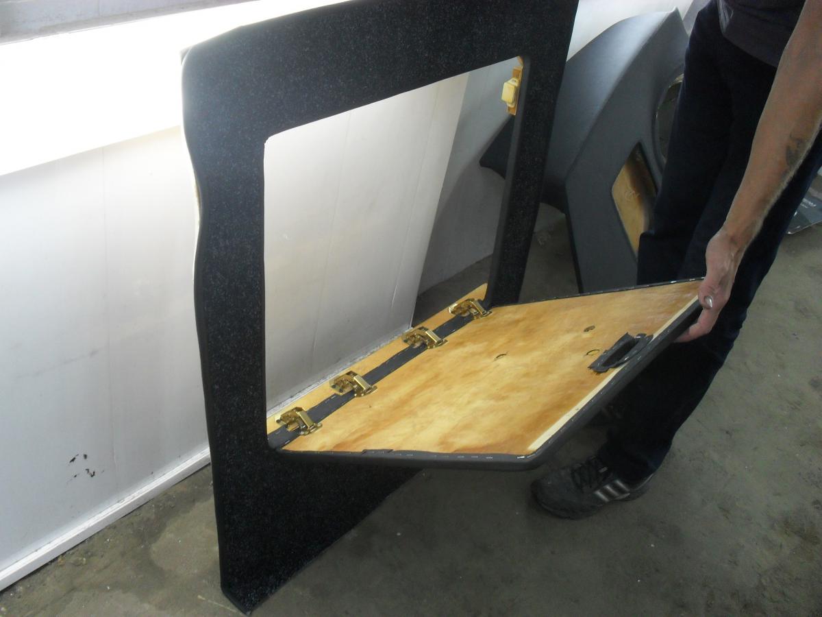 Ровный пол с дверочкой на петлях лягушках,затянут в ковёр,с отбортовкой из кожи.