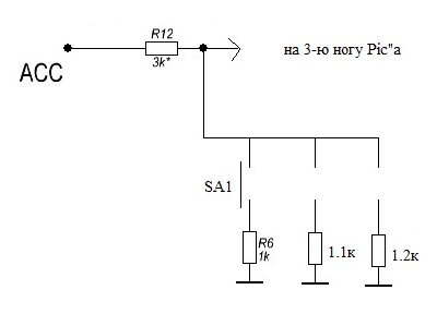 дабы регулировать диапазон допустимых напряжений от аккумулятора. Но проблема вот в чем, при включенном компьютере, вдруг по необходимости придется переключиться из одного диапазона напряжений в другой и в момент переключения будет происходить кратковременный разрыв контакта переключателя в делителе (м/у сопротивлением 3к и блоком сопротивлений 1-1.2к.), что приведет к появлению на выходе 3-х килоомного сопротивления 12-ти вольт, а в этом случае понятно что произойдет с Pic"ом, объяснять не нужно. Пытался решить этот вопрос в Proteus"е, на практике не решился, путем добавления 5-ти вольтового стабилизатора L7805 на выход делителя и к 3 ножке Pic"а, в этом случае изменялся коэффициент деления, и происходил сдвиг допустимых напряжений, в данном случае менял в прошивке коэффициенты, но на нужный допустимый диапазон напряжений не вышел. У кого какие идеи будут?