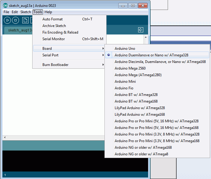 Подключаем шнурок к компьютеру, запускаем IDE выбираем тип контроллера