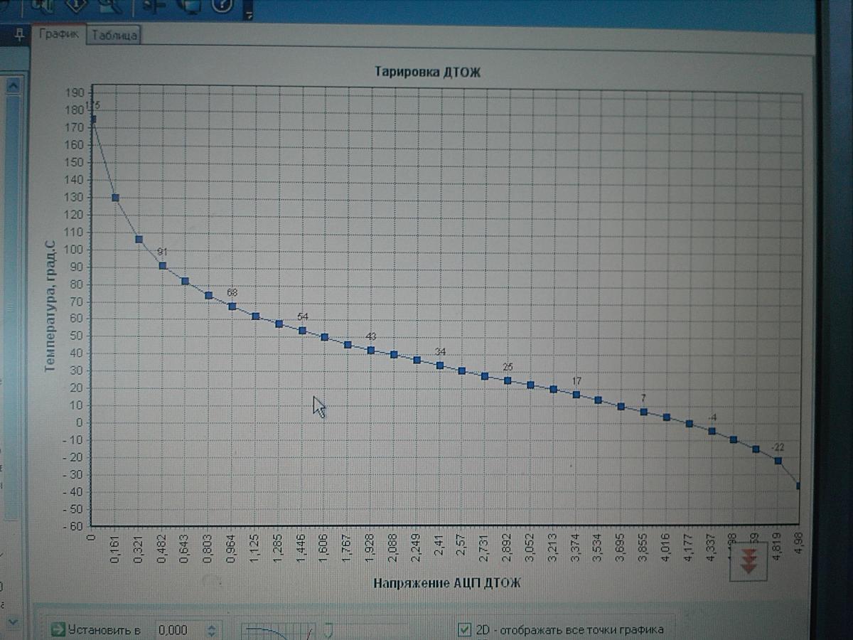 Для примера использовал график тарировки ДТОЖ. Из графика взял контрольные точки и сделал 2 массива.