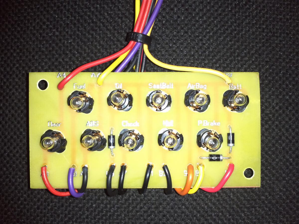 Решил сильно не париться, поэтому делаю модуль на 10 ламп(те,которые по схеме управляются минусом) который будет запрятан в недрах панели, пусть светят друг другу)))