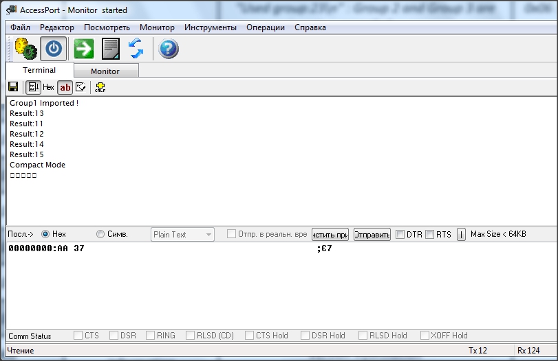 потом посылаю (АА 37) и еще раз скомандовал 5 команд для примера
