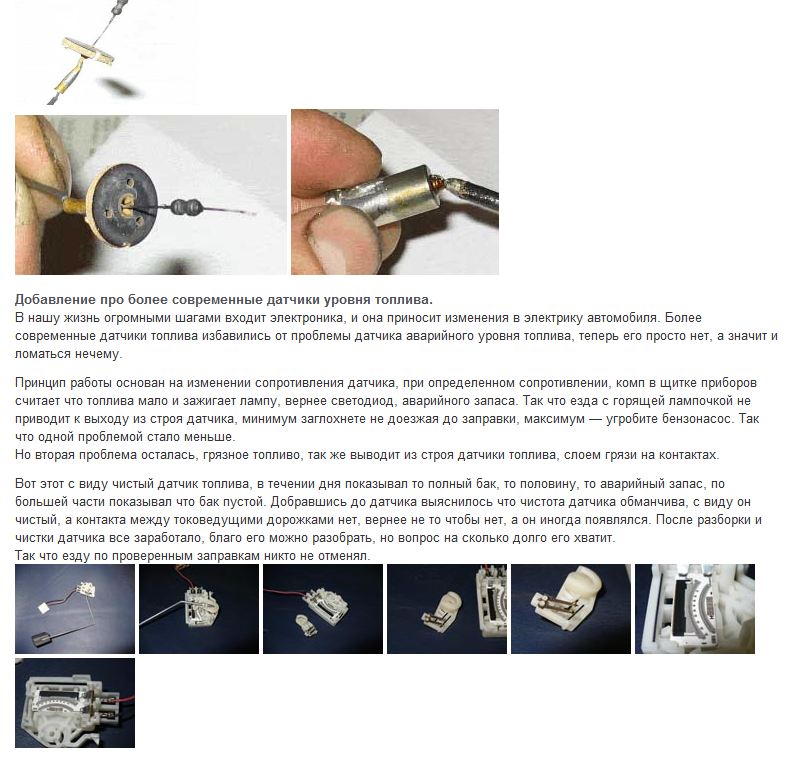 Выложенная выше статья, не подтверждает отсутствие датчика резерва. Есть мастера, которые этот боченок считают просто "волшебным конденсатором"