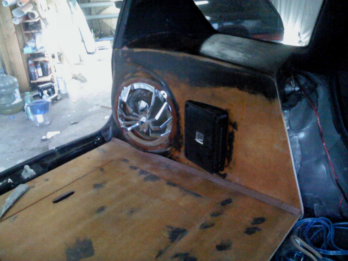 Корпуса сабвуферов находятся в нише задних крыльев,сделаны целиком из стеклоткани и врощены в фальшпанели.