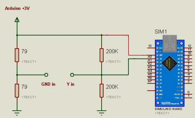 Примитивный делитель делит 3,2/2=1,6В на два плеча. Такую схему нельзя использовать если масса ПК и измеряемой модели соединены. Идеальный вариант, как делал я, использовать ноутбук.
