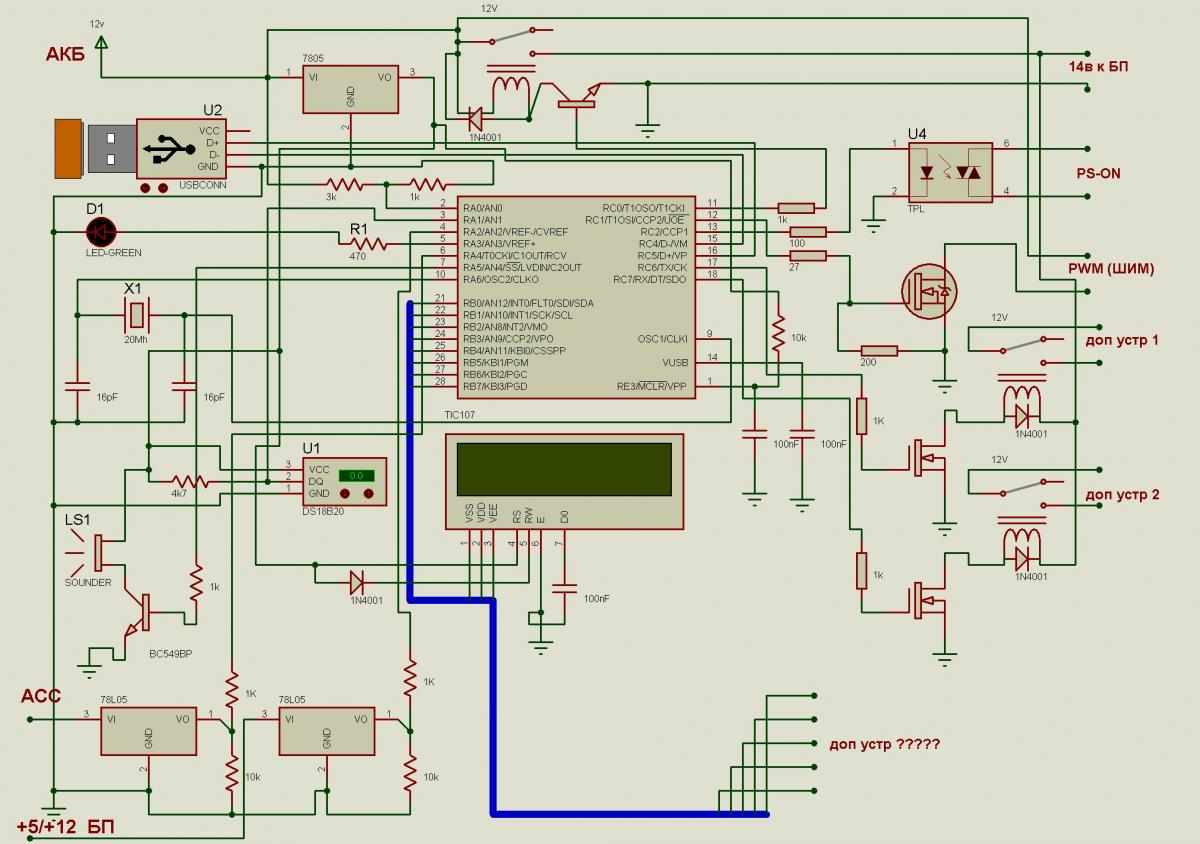 отличие от пред. контролера это наличие USB и управление и контроль параметров по нему + наличие датчика t для винта и выходного каскада для его нагрева (куда можно повесить все что угодно пельтье,лампочку и т.д.) + 2 ремоут устройства + индикатор (хотя не знаю нафиг он нужен).
