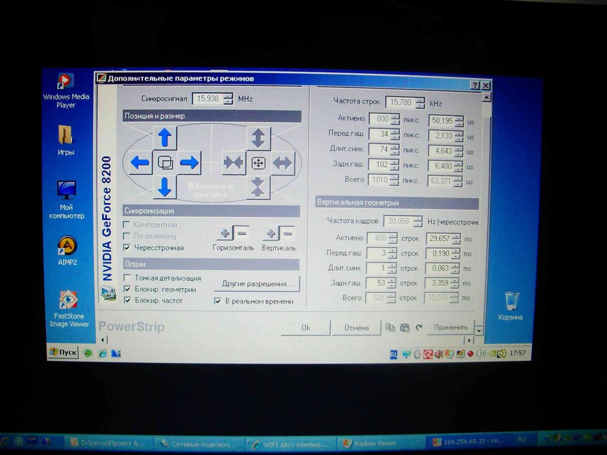 2. Картинка синхронизирована: это стрелочками на PwerStrip найдены положения устойчивого экрана.