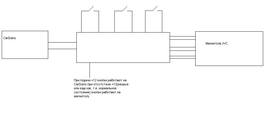 Может кто нарисовать схему комутатра для конопок? Суть: на морде есть кнопки, которые сейчас физически подпаенны на морду магнитолы, магнитола убранна с глаз долой в недра панели. Планируется кнопки использовать как для карписи так и для управления магнитолой тогда когда комп не включен (например в жуткую зиму =) Набрасал примерно то что хочется