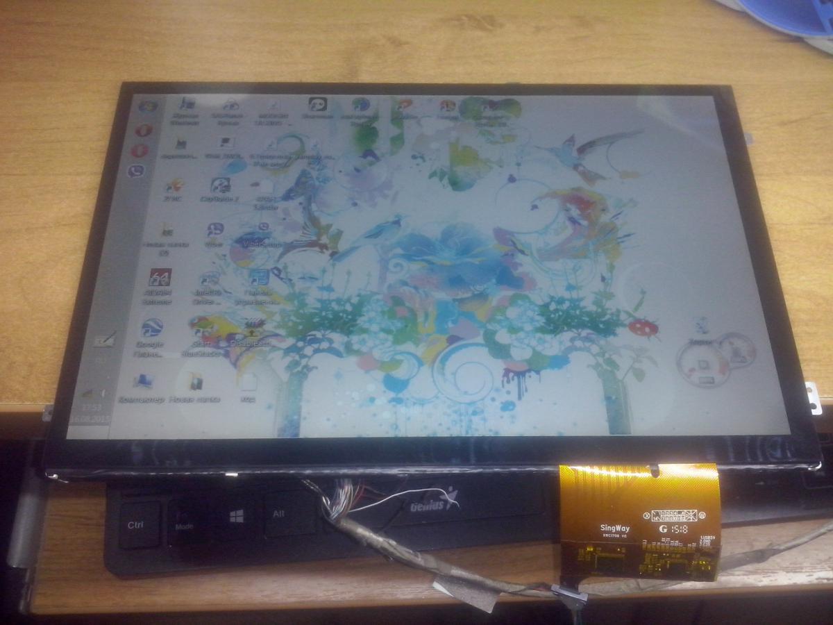 сенсорное стекло работает, но не совсем идеально, не поддаётся калибровке. при калибровке становится ещё хуже. при первом включении был конфликт драйверов и калибровки прежнего сенсора.