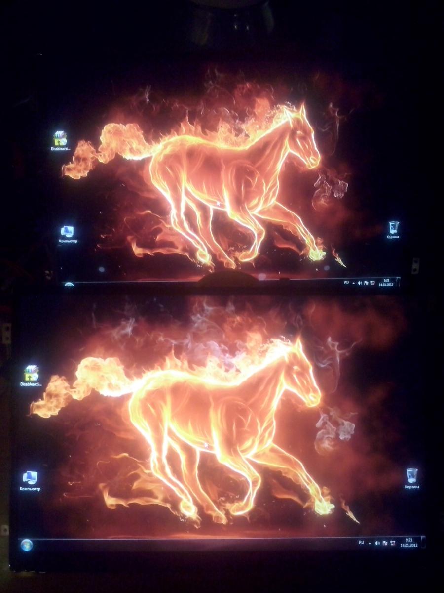 ещё: нижняя матрица(N101BCG-L21) подключена через контроллер VS-TY2662-V1, поэтому её яркость немного ниже, а контрастность немного выше и связано это скорей всего с битностью контроллера, это я ещё заметил когда в прошлом году подключил второй дисплей(фото сравнения не делал, т.к. матрицы были разные, контрастность тоже разная, но яркость обоих идентична). позже я сделаю фото при одинаковых картинках и одинаковых матрицах, но подключения будут разные: одна матрица будет подключена напрямую по ЛВДС к материнке, а вторая матрица по HDMI к контроллеру VS-TY2662-V1.