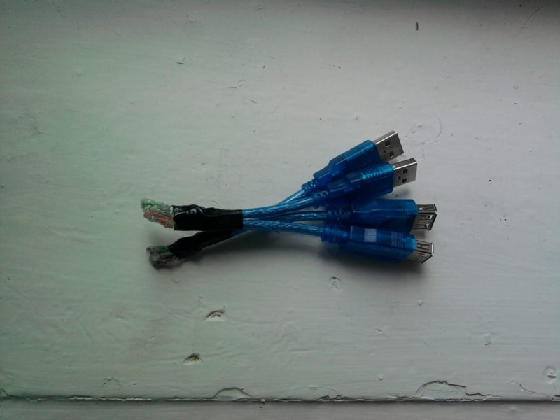 В итоге после сборки выяснилось что выведенные USB не работают. Оказалось китайцы не соблюдают цветовую маркировку линий USB в своих кабелях, в итоге соединив 2 кабеля по цветам, я получил инвертированные линии data+ и data-. Поэтому для винды все устройства "неизвестные". Чтобы не снимать сидение снова, я просто изготовил т.н. кросс-USB переходники =) Теперь USB работают. Пользоваться очень удобно