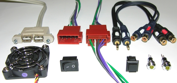 - отверстия для: кнопка вкл мат платы, 2 светодиодных индикатора, 2х2USB косички, 2х8пиновых разъема питания (стандартные для магнитол), кнопка вкл питания с АКБ;