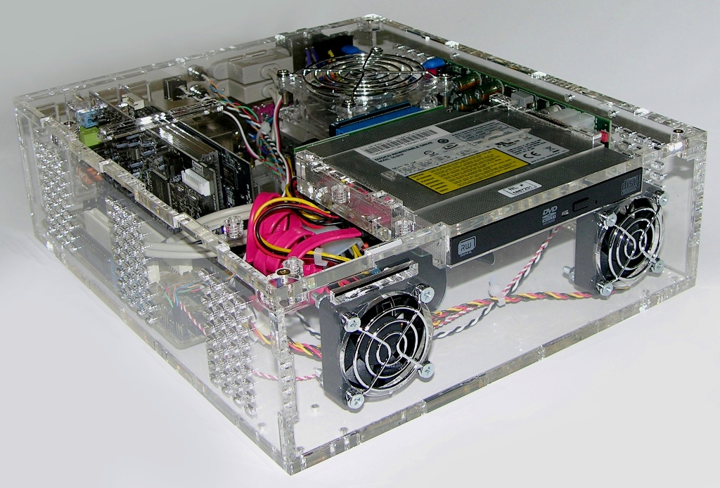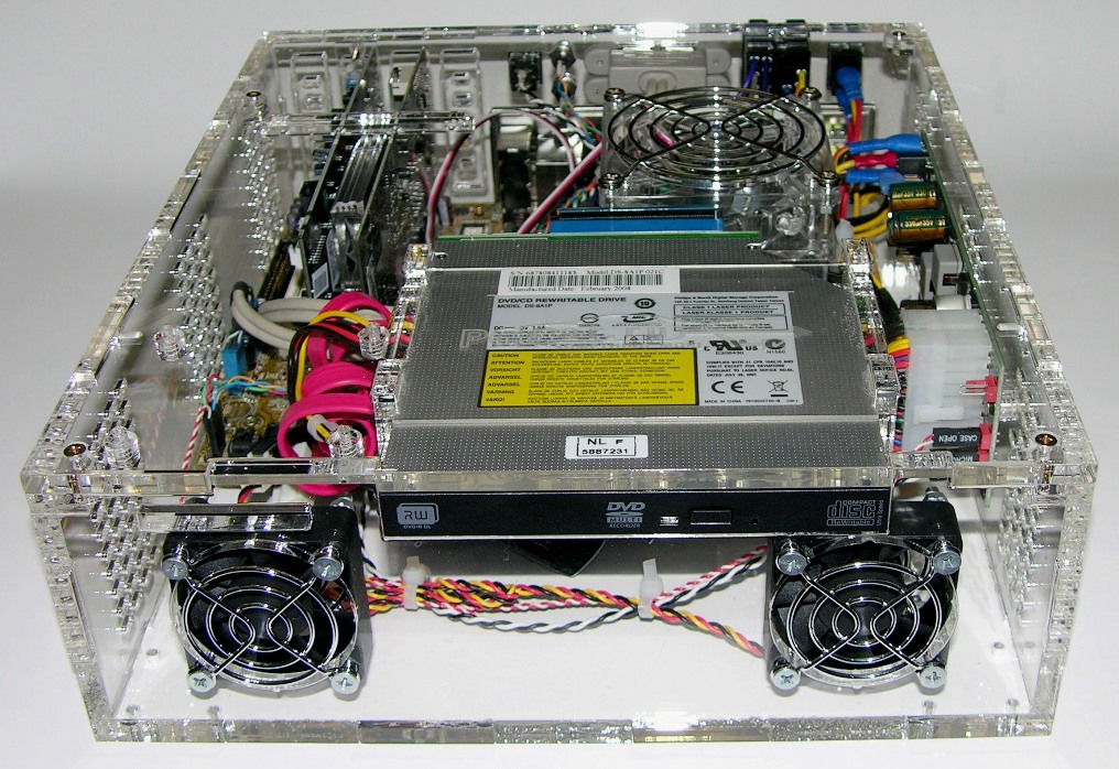 9. Универсальный корпус K2.1.2.o.6 из оргстекла под mini-ITX + PCI SB Audigy 24 + DVD-RW + M2-ATX 195x225x95