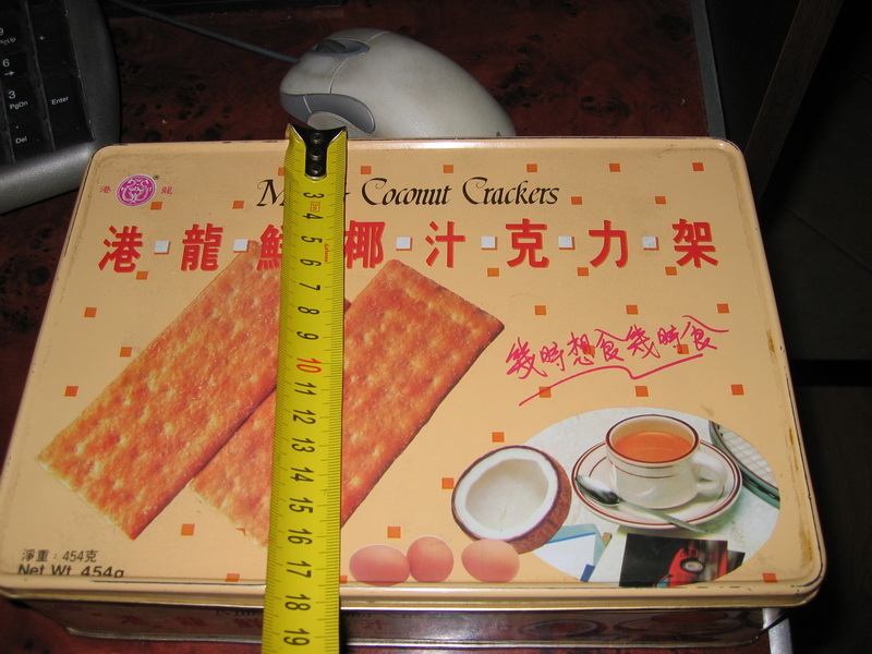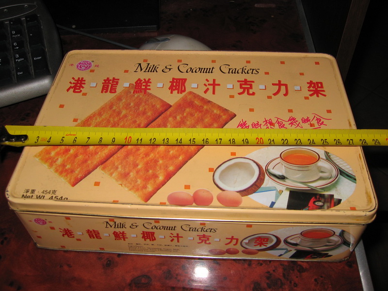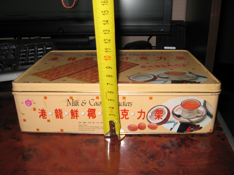 Сегодня прошел день в думках что бы использовать под корпус... Покупать жаба душит, его все равно никто не видит, собирался спаять из фольгированного текстолита, как тут.... только не смейтесь.. попалась на глаза коробочка из под печенья))) Эту коробочку (с печеньем конечно) подарила подруга жены лет 17 назад (вот память у жены). Печенье, наверное, благополучно съели в тот же день, а в коробочке жена хранила всякую дребедень. Глаз на размер мини ITX у меня уже наметанный, поэтому и попалась на глаза, замерил... Ну прям точняк 180х260х65 мм. Пришлось коробочку экспроприировать. Жалко нет кулеров в виде бантика, а то можно было бы комп под елочку себе положить)).