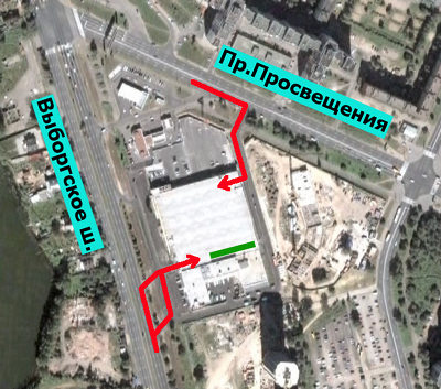 красные стрелки - пути заезда в подземный паркинг,