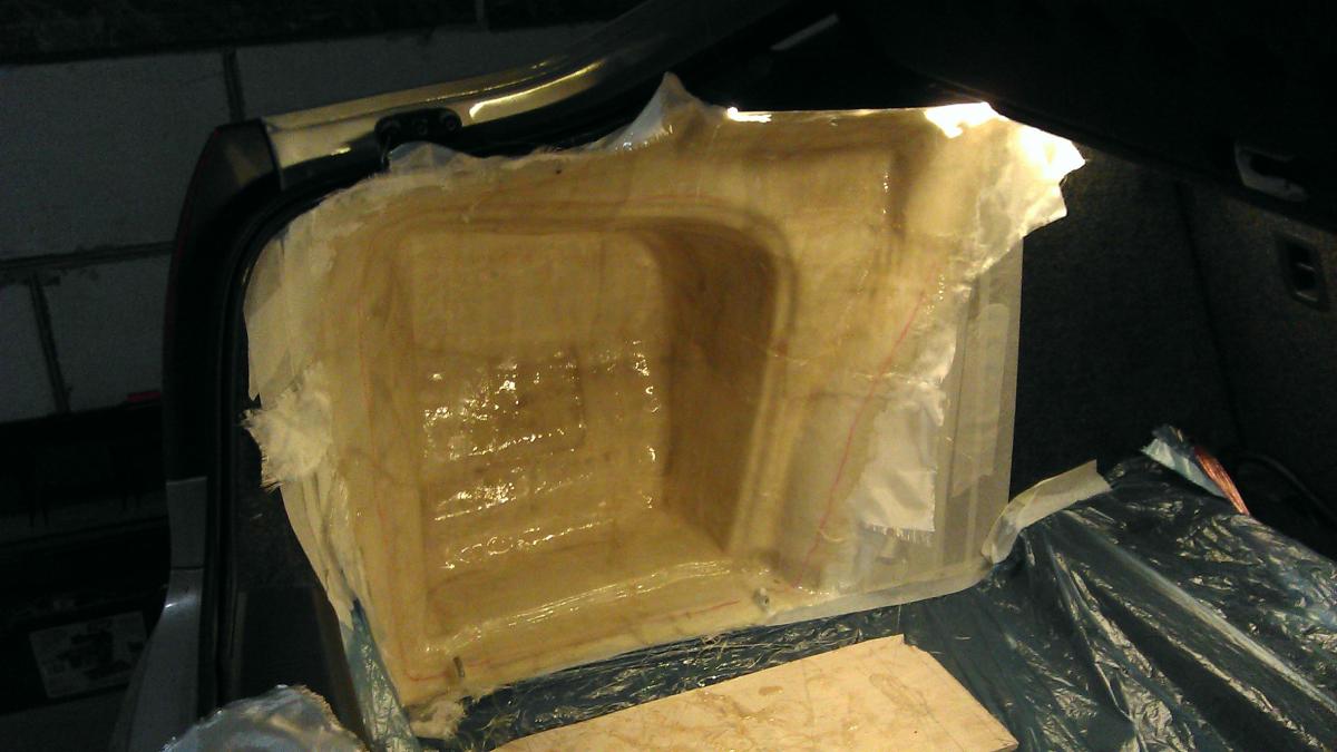 3. Саб. Было решено делать в корпусе стелс. Честно говоря, делать я его замудохался. Описывать не буду как делал, в нете полно инфы. Динамик стоит Alpine SWE 1243E, был отдан другом с оторванным проводом. Припаял... качает