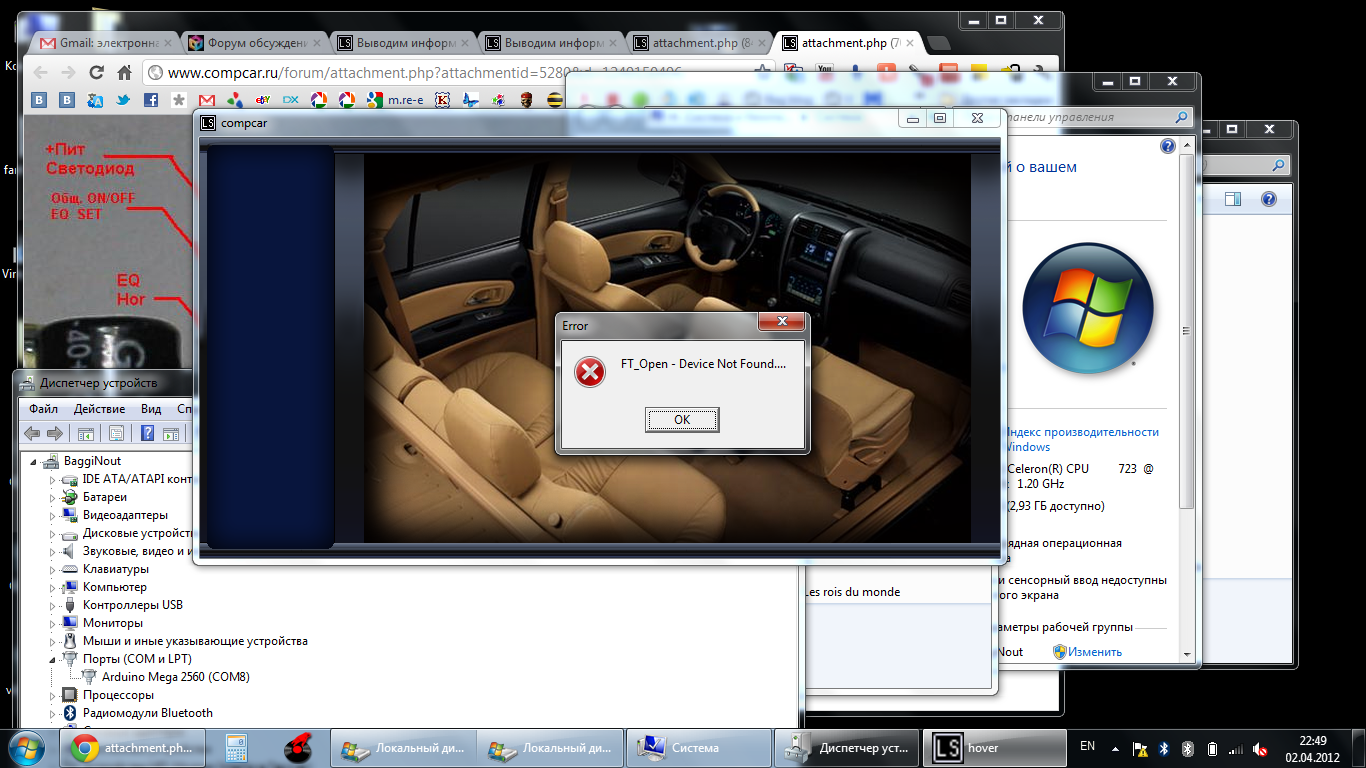 Заработало! В СОМ порт льются данные! Но программа hover.exe на ноутбуке W7x86U что-то не работает. Вот что пишет. Пробовал вытыкать USB несколько раз.