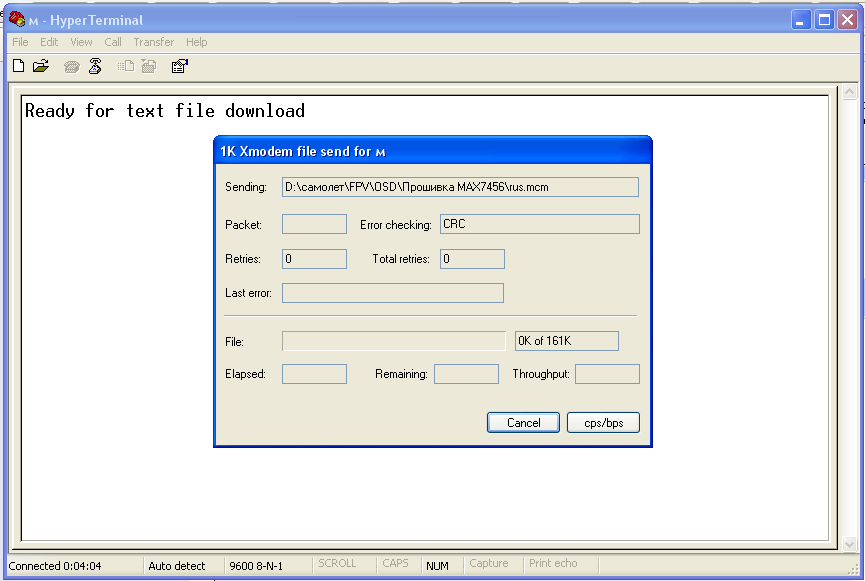 Чет не получается залить шрифт.Все сделал по вашей инструкции.Юзаю ардуино нано.Залил скетч для заливки шрифтов.Подключил макса по схеме из первого поста.Открыл терминал выбрал com, указал фаил а оно вон что...