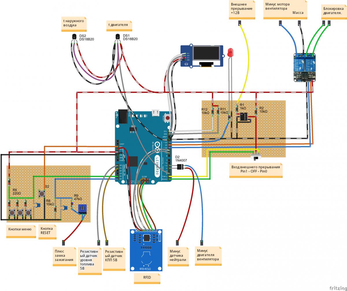 Печатную плату делать не буду, тк напрочь отсутствует возможность добавить, что-либо, поэтому исходник Fritzing`a пока не выкладываю.