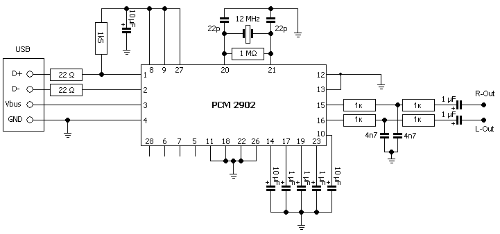 Я спаял такую штуку- live!5.1 рядом не валялась. Щас вот хочу развести человеческую плату с отдельным питанием (от 5 вольт USB шум гонит) , по всем линиям питания поставить ферритовые бусинки и использовать нормальные электролиты.
